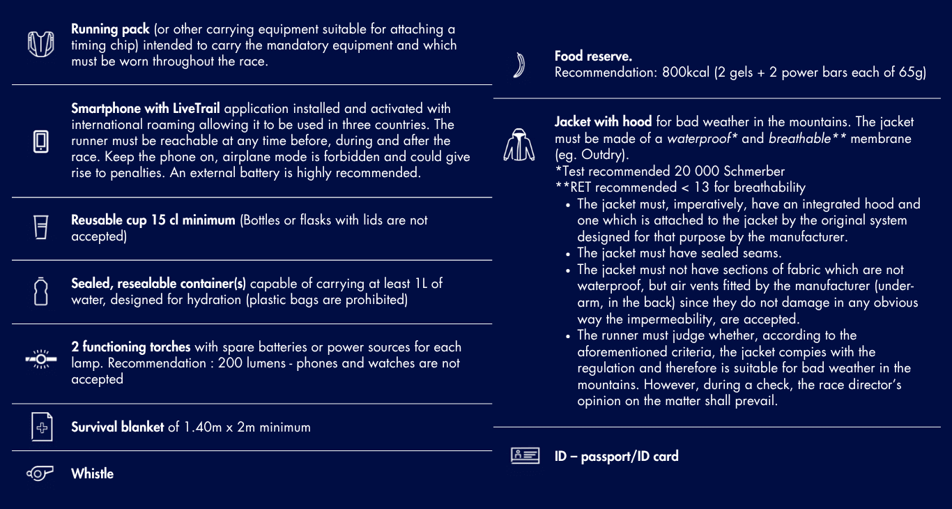 Each athlete will receive an official UTMB World Series drop bag at bib collection. Athletes must attach the bib number sticker—provided with their race bib—to the bag.